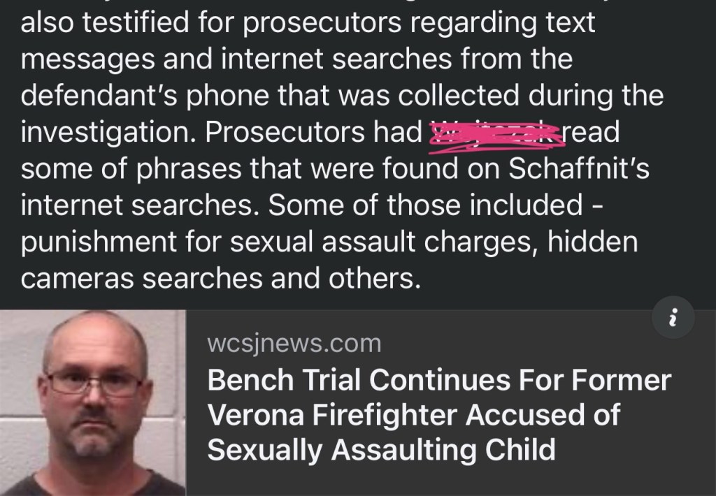 Small, small sample. Sure not illegal to search… BUT….. my initial thought while combing through the evidence… if the defense is “she’s lying I didn’t rape her nightly for four years” why would an innocent man look up what the punishment is?